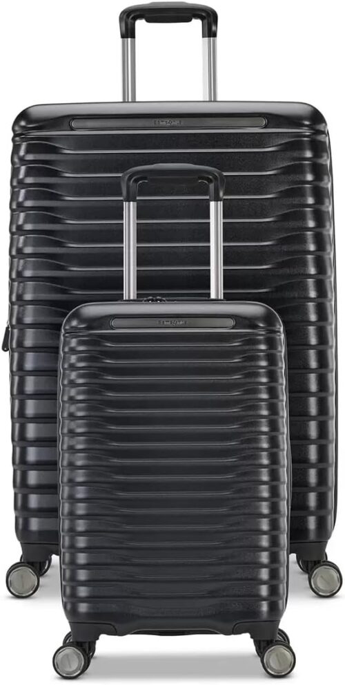 The Samsonite Element 2-Piece Set includes a cabin case and a large suitcase, designed to make your travels seamless and stress-free. The interior is lined with eco-friendly Recyclex fabric, crafted entirely from 100% post-consumer recycled PET bottles. A clear, zippered vinyl pocket in the top compartment is ideal for keeping soiled laundry separate from your clean clothes during your trip. For added convenience, the EazyHook system allows you to attach a small tote bag to the front of the case. The innovative RightHeight handle system offers multi-stop adjustments, enabling you to customize the handle height for maximum comfort. Both suitcases are equipped with 360-degree spinner wheels, ensuring effortless maneuverability for smooth handling wherever your journey takes you.