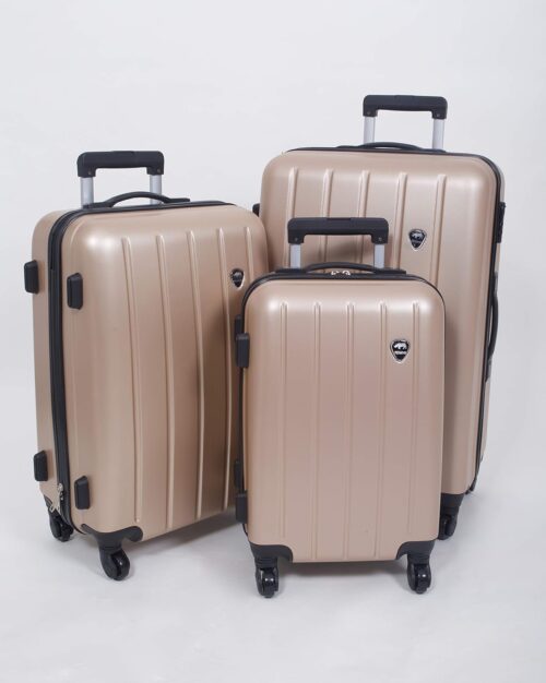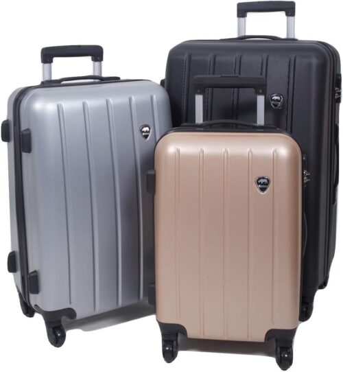 Lightweight Hardshell ABS 3 Piece Luggage Set. Available in black, Silver or Champagne