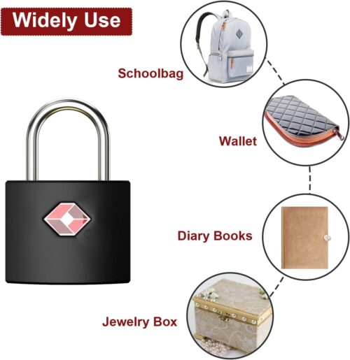 【Compact & Light weight】Each padlocks weigh about 42 g, size is 3.9×2.5×1.3 cm, easy to carry or store. Small locks casual and simple black style, satisfying most people’s preferences