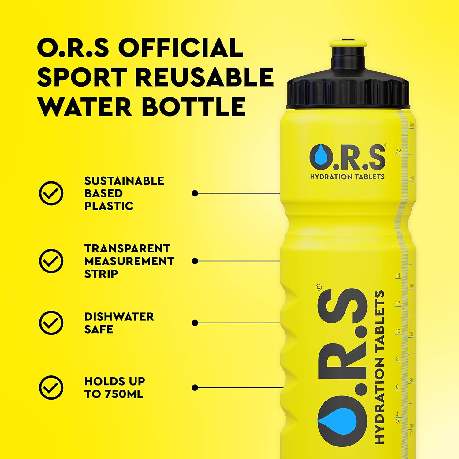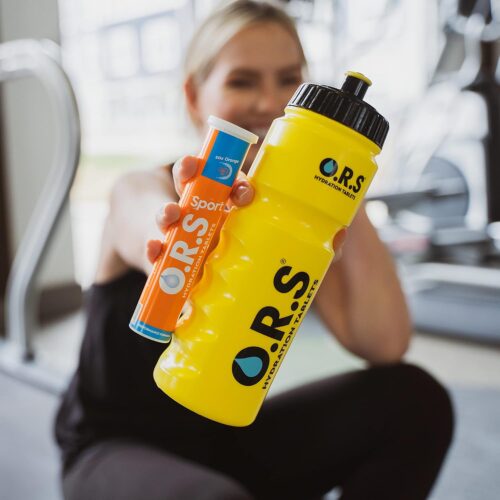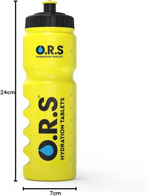 Official O.R.S Hydration Bottle with sports cap and measuring strip; 750Ml sports water bottle ideal for refreshment at the gym; travel; school; in the office; in hot weather and every day